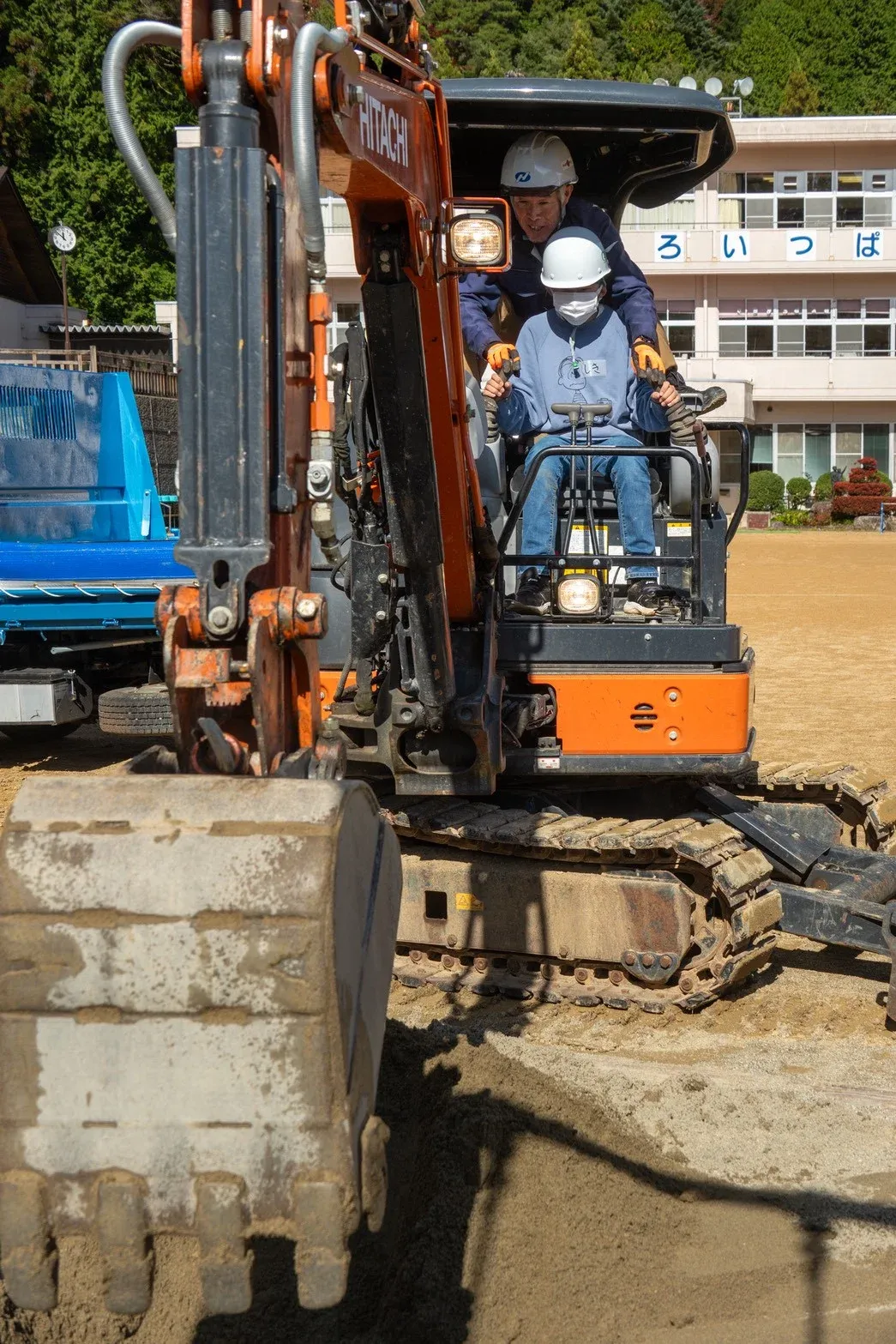 参加した児童たちは、初めて見る建設機械に目を輝かせ、熱心に説明を聞きながら体験に取り組んでいました。